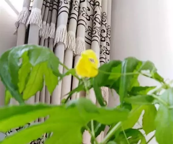 当幼苗长至5-6片真叶时,应及时插竹搭棚。棚架一 苦瓜花 般搭“∏”字型棚架,让枝蔓均匀分布于棚架上。当瓜苗长至50-60厘米时,即可引蔓上棚。一般引主蔓沿支架(绳)直上,侧蔓向支架左右方向横引,引蔓时间以晴天的下午进行为好。苦瓜分枝性特强,侧蔓多,且有些侧蔓是不结瓜的。引蔓上棚后,应将主蔓基部距离地面50厘米以下的侧蔓及上部不着生雌花的短、弱、过密的、衰老的、有病的枝叶及时摘除,使群体既能通风透光良好,提高光合作用和光能利用率,又能减少养分消耗,利于开花结瓜。