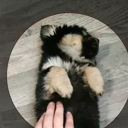 肩 澳大利亚丝毛梗(图5) 角度适中,平贴于上肢上方,前肢的位置恰好位于身体下面。前肢结实、笔直、骨骼纤巧。足爪小,猫足、圆、紧凑。脚垫厚实而有弹性,趾甲坚硬而且颜色深。白色或肉色的趾甲属于缺陷。足爪笔直向前,没有内翻或外翻情况。如果有狼爪,必须切除。