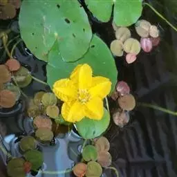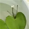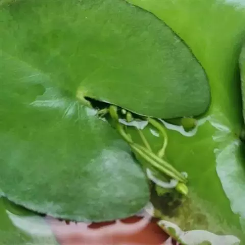 金银莲花是多年生水生草本。茎圆柱形,不分枝,形似叶柄,顶生单叶。叶飘浮,近革质,宽卵圆形或近圆形,长3-18厘米,下面密生腺体,基部心形,全缘,具不甚明显的掌状叶脉,叶柄短,圆柱形,长1-2厘米。