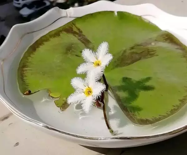 金银莲花又名印度莕菜,是公园常见的水生花卉,叶似睡莲,椭圆形至心形,革质光滑,青绿色,漂浮于水面;常在夏天开白色的小花,花齿绒毛状,幼小娇柔,开在碧波绿叶上,朵朵小花星星点点,能洒满整个水面,微风拂过,随风荡漾,摇曳生姿,带给人一种花欲静而风不止,景有尽而意无穷的美感。在风景区或公园湖面成片种植金银莲花,夏秋时节,那白色的小花,星罗棋布,银光闪闪,极目远眺,田园风光,秀色可餐。