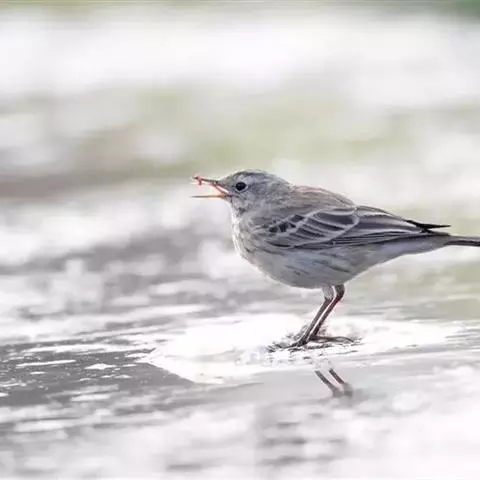粉红胸鹨:属小型鸣禽,体重18-27克,体长13-18厘米。非繁殖期粉皮黄色的粗眉线明显,背灰而具…