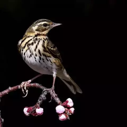 树鹨是小型鸣禽,外形和林鹨相似,体长15-16厘米。上体橄榄绿色具褐色纵纹,尤以头部较明显。…