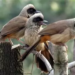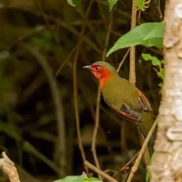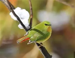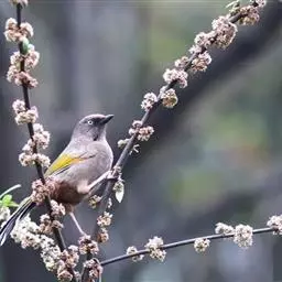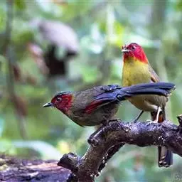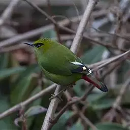 习性:一般都单独活动有时也见3至5只小群穿梭於枝桠间或在树枝上跳跃活动。有时结小群于开花结果的树上取食。性活泼而不惧生。
