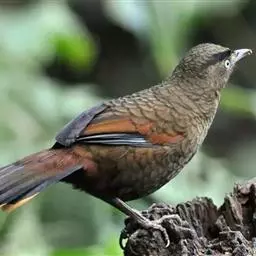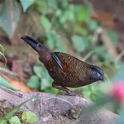 蓝翅噪鹛:噪鹛科、彩翼噪鹛属动物。中型鸟类,体长22-25厘米。上体棕橄榄褐色密被黑色鳞状斑,…