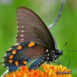 巴黎翠凤蝶中型凤蝶,躯体黑褐色,散布绿色亮鳞。后翅M3脉端有一明显叶状尾突。翅背面底色黑褐色,密布…