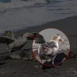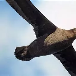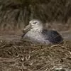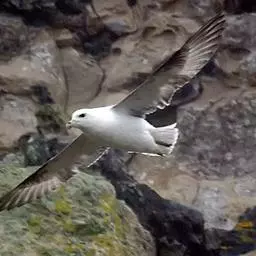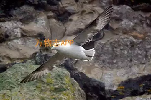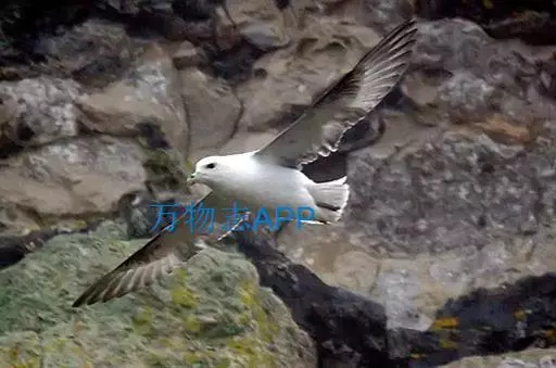 暴风鹱(学名:Fulmarus glacialis):为鹱形目鹱科下的一种中型海鸟,共有3个亚种。体长45-48厘米,体重0.5-1千克。外形和体色很像鸥,头、颈和下体白色,眼前有一黑色斑点,背、翅和尾珠灰色或淡褐灰色,嘴短,灰绿色或黄色。暴雪鹱和鸥的区别在于它呈管状的鼻和由数枚角质片构成的嘴以及较鸥窄而长的翅。不过在野外只要看到它那强直的翅和在紧贴海面上空时而两翅迅速地鼓动,时而又长时间地在海面上空滑翔,就不难将它从鸥群中指认出来。