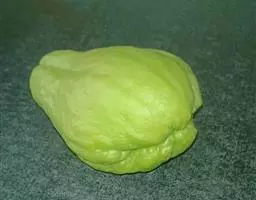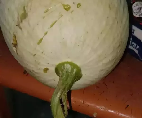 瓜形似佛手,又似皇冠,形状怪异又名“小丑南瓜”,浅黄白色,瓜长11厘米左右,高8厘米,重约130克。