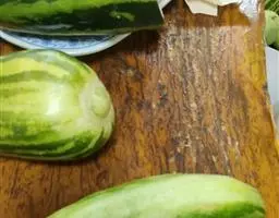 底部为深绿色,上方为橙黄色,并有淡黄色条纹相间,嫩瓜可食用,老熟