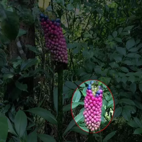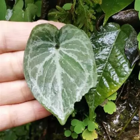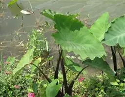 多年生草本。株高30厘米-40厘米,无茎或茎短小,具块茎或伸长的根茎,有时茎变厚而木质。叶基生,叶长椭圆状披针形,两端渐尖,叶脉明显,叶柄长,深绿色,基部呈鞘状,叶全缘或有分裂。