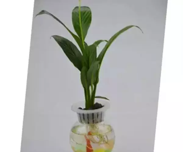 水培白鹤芋的养护: 一。盆的选择 白掌【白鹤芋】想水培的话买个花瓶底部较大些的,一般都在中型的鱼缸内