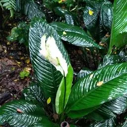 白鹤芋(天南星科)叶片发黄是多种原因,1.水多叶黄:马上停浇水。2.缺水干黄:马上往叶片上喷水。3.光强暴晒叶黄:及时喷水降温。4,肥多烧叶黄:多浇水把肥排除。5.缺肥叶瘦黄:应马上施肥,一周内见效。6.病害叶黄:及时喷药。7.虫害叶黄:及时灭虫可恢复。