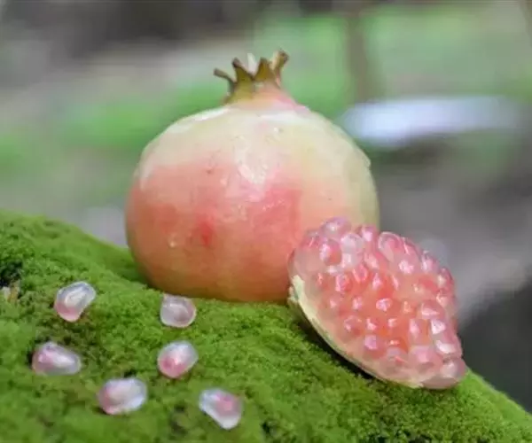 成熟后变成大型而多室、多子的浆果,每室内有多数子粒;外种皮肉质,呈鲜红、淡红或白色,多汁,甜而带酸,即为可食用的部分;内种皮为角质,也有退化变软的,即软籽石榴。