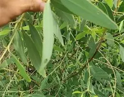 叶对生或簇生,呈长披针形至长圆形,或椭圆状披针形,长2-8cm,宽1-2cm,顶端尖,表面有光泽,背面中脉凸起;有短叶柄。