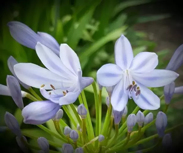 百子莲叶色浓绿,光亮,花蓝紫色,也有白色、紫花、大花和斑叶等品种。6-8月开花,花形秀丽,适于盆栽作室内观赏,在南方置半阴处栽培,作岩石园和花径的点缀植物。