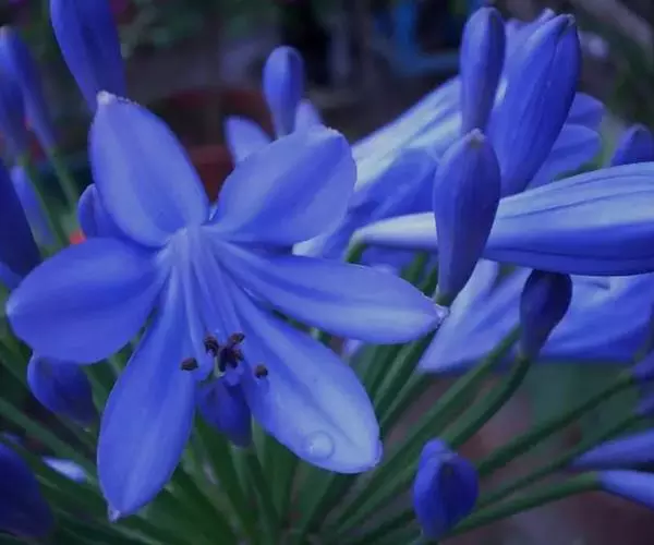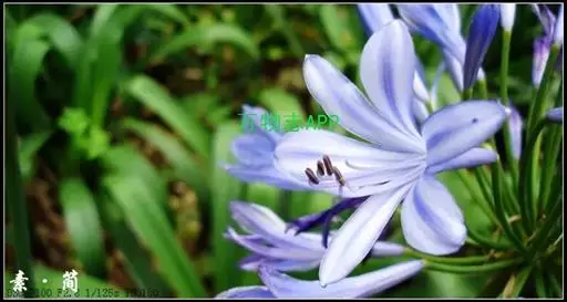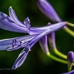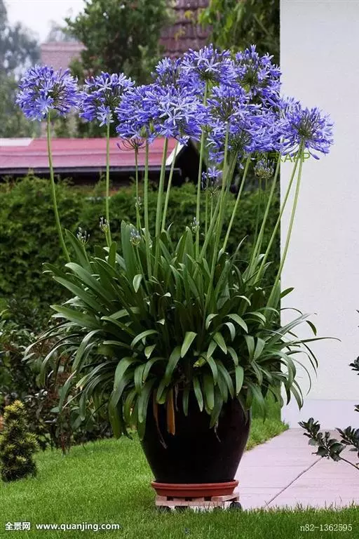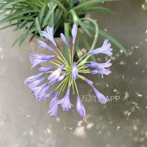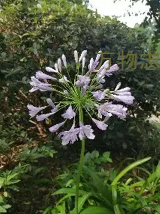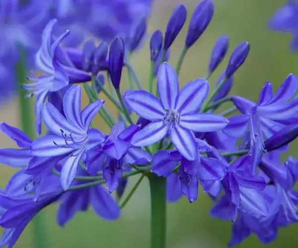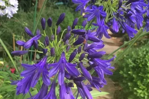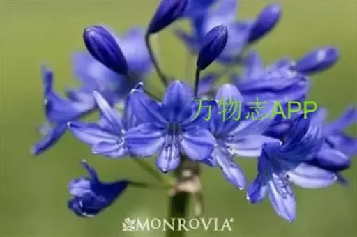 百子莲属多年生宿根草本。线状披针形,花茎直立,高可达60厘米;伞形花序,有花10朵~50朵,花漏斗状,深蓝色或白色,花药最初为黄色,后变成黑色;花期7月~8月。