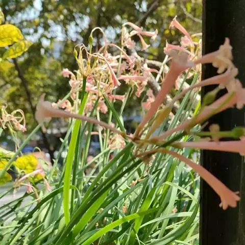 稻草石蒜草本,地生。鳞茎近球形;叶带状;伞形花序,有花5-7朵,花稻草色;花被裂片腹面散生少数粉红…