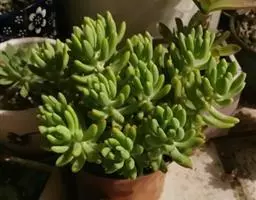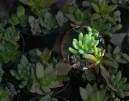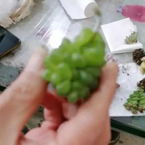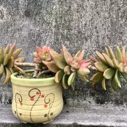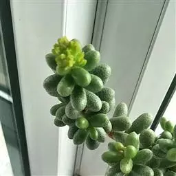 千佛手(xSedeveria 'Harry Butterfield')又名王玉珠帘、菊丸,是景天科的多肉植物,景天属与拟石莲花属的跨属杂交种。无明显休眠期,幼株比较矮小,多年生老株会形成垂吊状,非常适合家庭盆栽。此品种最早在美国加利福尼亚州被培育,又名玉缀和静夜。