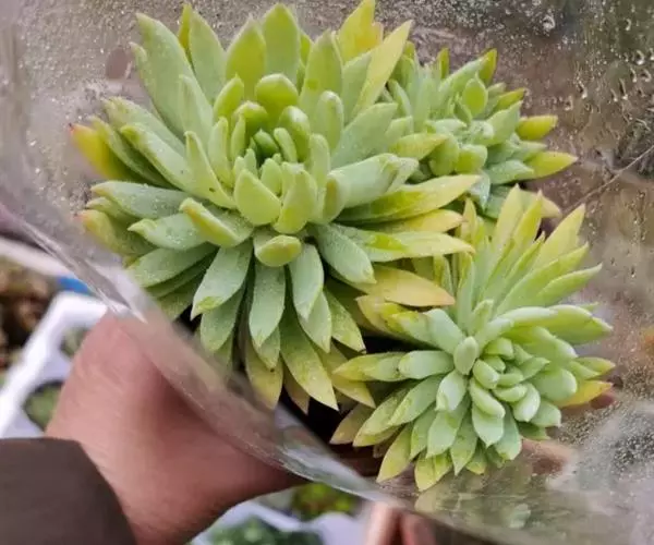 千佛手 (xSedeveria ’Harry Butterfield‘),又名菊丸、王玉珠帘,景天科景天属,无明显休眠期。千佛手开花的 千佛手开花 样子非常别致,刚开始被绿色叶子所包拢保护,叶子张开的时候才露出花苞,花为黄色,多在春夏季开放。
