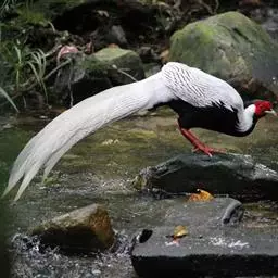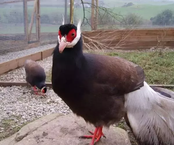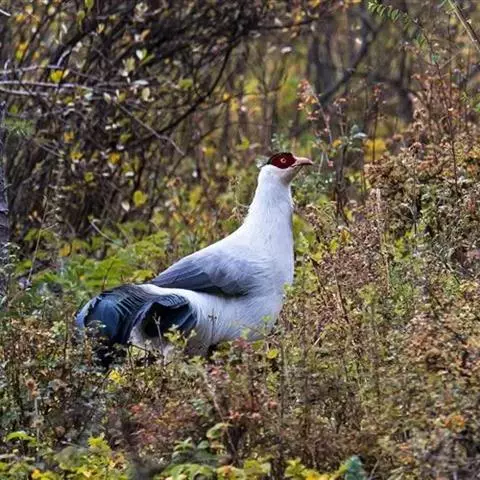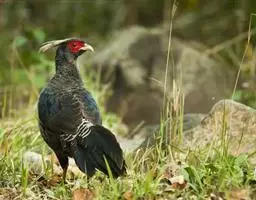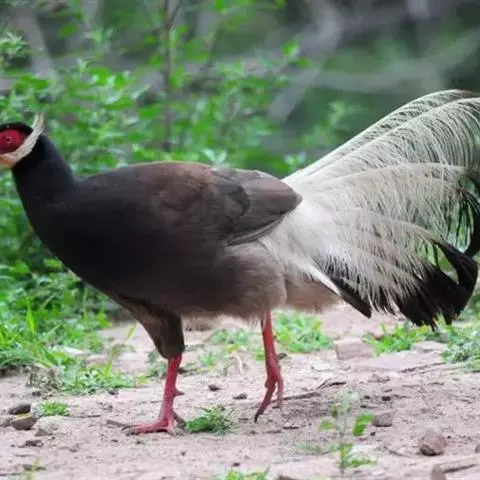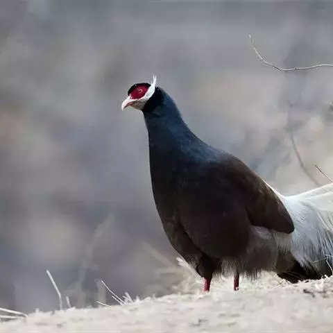 褐马鸡(学名:Crossoptilon mantchuricum)是中国特产珍稀鸟类,体高约60厘米,体长1-1.2米,体重5千克,全身呈浓褐色,头和颈为灰黑色,头顶有似冠状的绒黑短羽,脸和两颊裸露无羽,呈艳红色,尾巴高高竖起。翅短,不善飞行,两腿粗壮,善于奔跑。