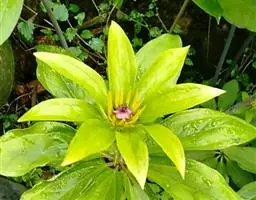 花叶重楼(学名:Paris violacea Levl.)是百合科,重楼属多年生直立草本植物,高可达18厘米;根状茎粗短,叶轮生,叶片披针形或狭披针形,上表面深绿色,下表面紫褐色,近无柄。外轮花被片狭披针形,端渐尖;内轮花被片条形,上部稍变宽;药隔完全不突出于花药之上;子房近球形,绿色,花柱粗短,上蒴果深紫色,开裂。