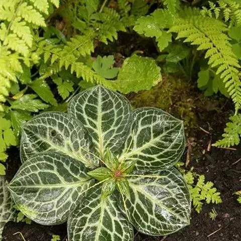多年生直立草本,高7-18厘米;根状茎粗短,直径达8毫米。叶(4-)5-6枚轮生,披针形或狭披针形,长5.5-6.5厘米,宽1.4-2.1厘米,上表面深绿色,沿脉具有白色斑纹,下表面紫褐色,近无柄。