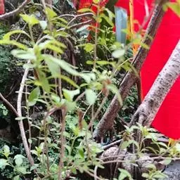 叶条状披针形,长5-10厘米,宽1-2厘米,顶端渐尖,基部阔三角形、圆形或截形,边缘有钝锯齿;叶柄长1-2.5厘米。