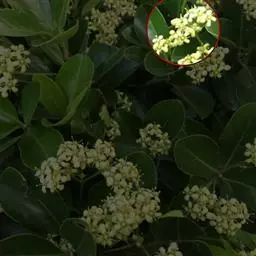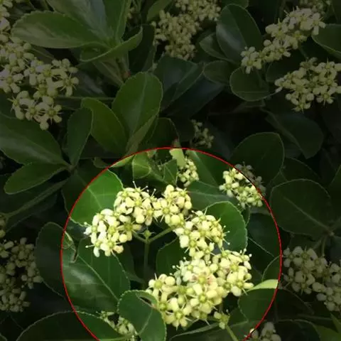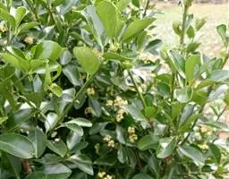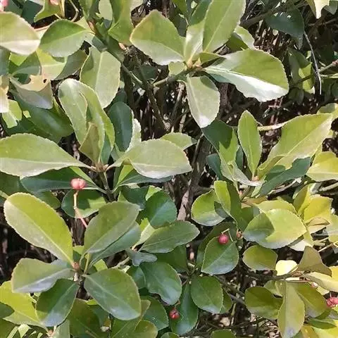 常绿灌木或小乔木,高达8米。 叶光亮革质,倒卵形或窄长椭圆形,长3-6厘米,宽2-3厘米。 聚伞花…