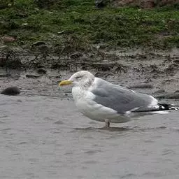 灰背鸥大型水鸟,体长62~69厘米。嘴直,黄色,下嘴先端有红色斑。脚粉红色,头、颈和下体白色,背、…