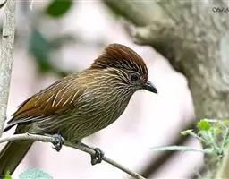 条纹噪鹛是画眉科、噪鹛属中型鸟类,体长28-32厘米。头具短的羽冠,上体栗褐色,飞羽外翻蓝灰色。…