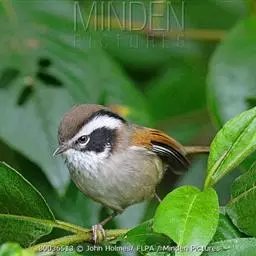 白领凤鹛是画眉科的一类动物。体长15-18厘米。头顶和羽冠土褐色,具白色眼圈,眼先黑色,枕白色,…
