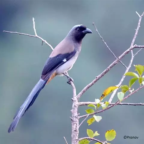 灰树鹊中型鸟类,体长多为31~39厘米。头顶至后枕灰色,其余头部以及颏与喉黑色。背、肩棕褐或灰褐色,…