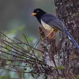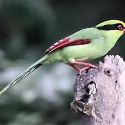 蓝绿鹊:中型鸟类,共有5个亚种。体长36-38厘米。尾长,嘴、脚红色。通体羽色主要为草绿色,…