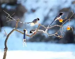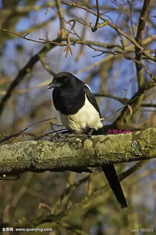 喜鹊:是鸦科、鹊属的一种鸟类。共有11个亚种。体长40-50厘米,雌雄羽色相似,…
