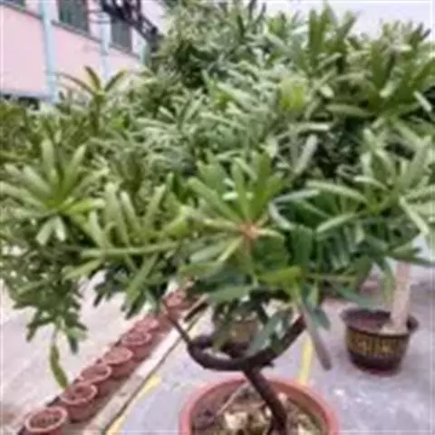 老干深褐至黑褐色,外皮呈纵向条状剥裂,片状脱落,枝梢较短而柔软,灰绿色,分枝力差。短叶罗汉松原产于中国云南山区,现南北各地主要用于盆栽观赏。