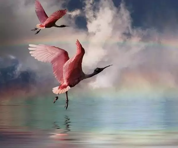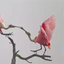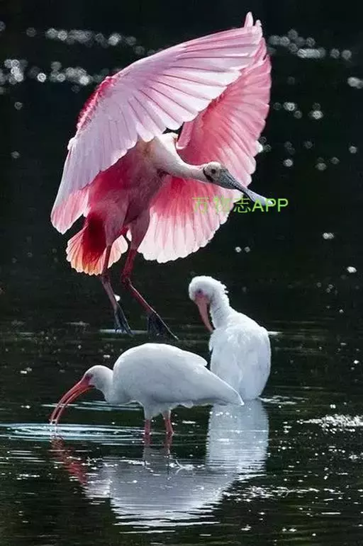 南美洲和北美洲的玫瑰红琵鹭(Ajaia ajaja)体长约80公分,体羽深桃红色,颈和上背白色。分布自德克萨斯州的墨西哥湾海滨和西印度群岛到阿根廷和智利。