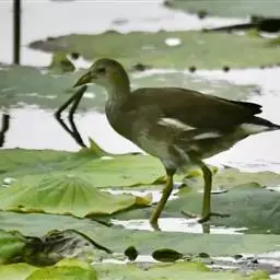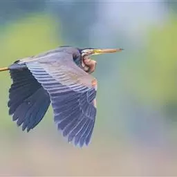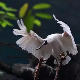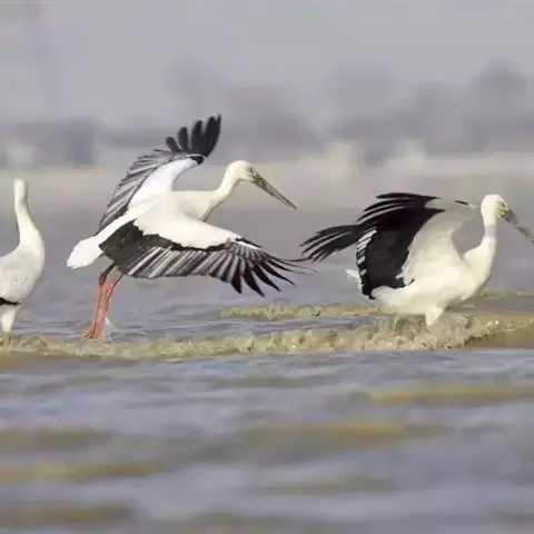 琵鹭 琵鹭常成群活动。偶尔亦见有单只活动的。休息时常在水边成一字形散开。长时间站立不动,受惊后则飞往他处。性机警畏人,飞翔时两翅鼓动较快,平均每分钟鼓动达186次左右。飞翔时常排成稀疏的单行,或成波浪式的斜列飞行。既能鼓翼飞翔,也能利用热气流进行滑翔,而且常常是鼓翼和滑翔结合进行,在一阵鼓翼飞翔之后接着是滑翔。飞行时两脚伸向后方,头颈向前伸直。