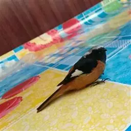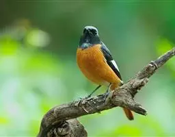 赭红尾鸲:小型鸟类,体长13-16厘米。雄鸟前额、头侧、颈侧、颏至胸概黑色,头顶和背灰色或黑色,…