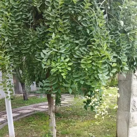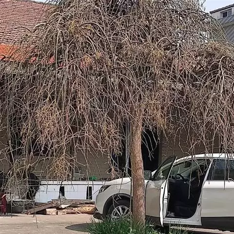 树皮暗灰色,粗糙,不规则纵裂。幼树枝条直立,且被白色毛;老树枝条先端下垂,有时木栓质发达成为瘤状。…