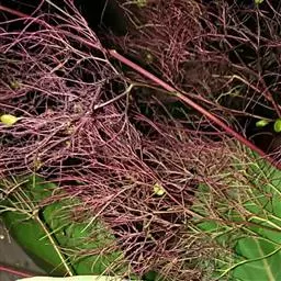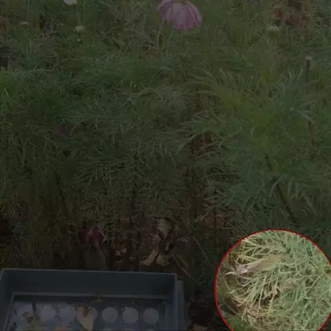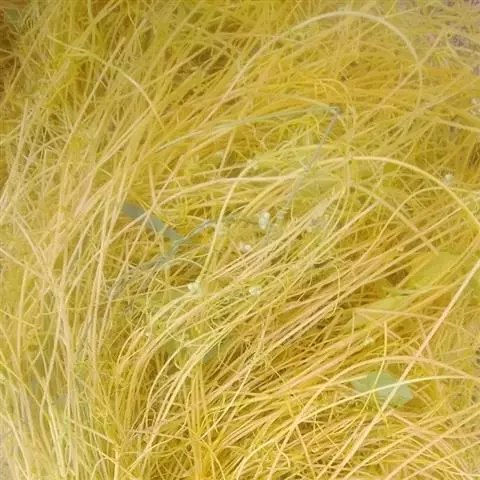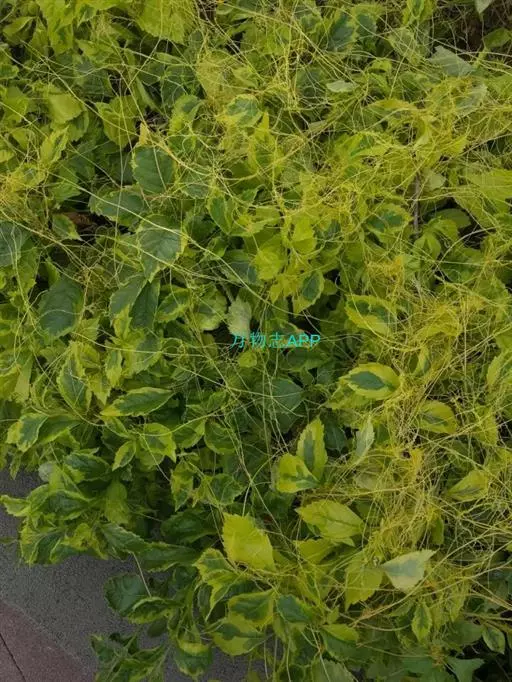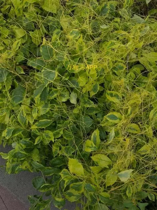 症状特点:苗木和花卉均可受菟丝子寄生危害。花卉苗木受害时,枝条被寄生物缠绕而生缢痕,生育不良,树势衰落,观赏效果受影响,严重时嫩稍和全株枯死。成株受害,由于菟丝子生长迅速而繁茂,极易把整个树冠覆盖,不仅影响花卉苗木叶片的光合作用,而且营养物质被菟丝子所夺取,致使叶片黄化易落,枝稍干枯,长势衰落,轻则影响植株生长和观赏效果,重则致全株死亡。