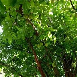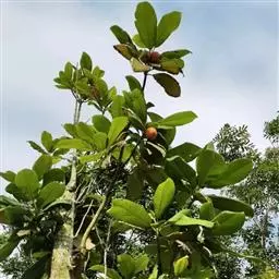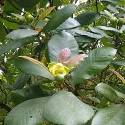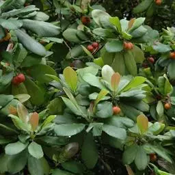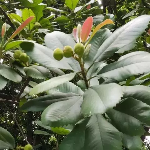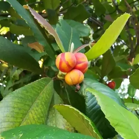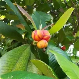 果实长约1厘米,成熟时黄红色,干后果皮薄革质,稍发亮,有残存花柱;种子1个,黑色,基部有黄色流苏状的假种皮。花期4-5月。