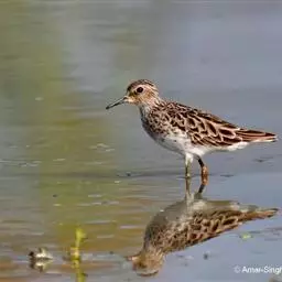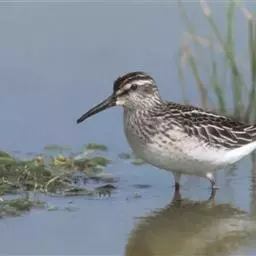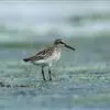 阔嘴鹬是涉禽,体长17厘米。特征为翼角常具明显的黑色块斑并具双眉纹。与黑腹滨鹬平滑下弯的嘴相比,…