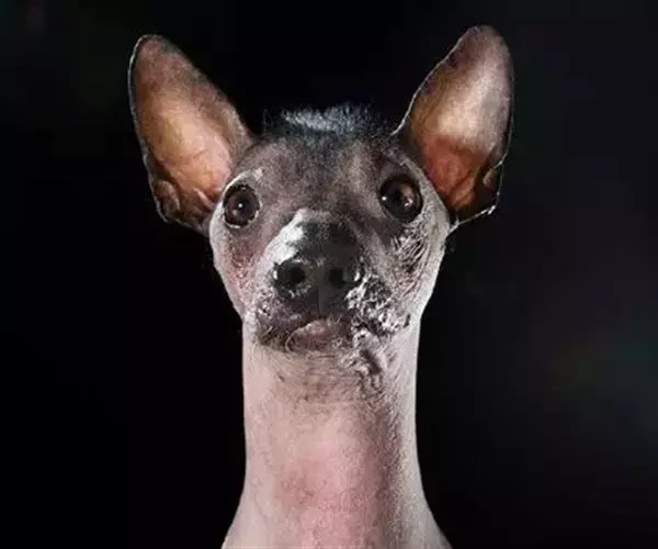 墨西哥无毛犬那粉红色、皱巴巴的皮肤上布满雀斑,身上有黄褐色毛发覆盖的地方,仅仅在血管清楚可见的两耳之间、黏糊糊的下颚,以及老鼠般的尾巴末端