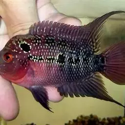 繁殖生物学特性:雌鱼体长达10厘米左右就可以用于繁殖,雄鱼个体要小一些。生殖期间亲鱼身体的颜色变得更加艳丽,特别是雌鱼。与大多数慈鲷科鱼类一样,它的繁殖特性是自行配对繁殖,且表现出强烈的护幼行为。繁殖的最佳条件为pH值7.0~7.2,硬度7~9,水温25~28℃。喜欢把卵产在平滑的石块或光滑的平板上。红宝石鱼雌雄鉴别比较困难,其主要区别是:雄鱼臀鳍末端比雌鱼尖而长;雌鱼性成熟时腹部较膨胀,体色更为艳丽。