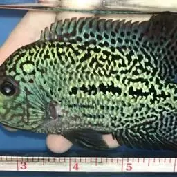 红宝石鱼属非三湖慈鲷类的非洲慈鲷,体形较短鲷大。该种鱼的特点在于全身靓丽的蓝色斑点和尾柄前面的大型黑斑。红宝石的名字来源于在它们繁殖期间会出现艳丽的红色。而实际上本种鱼有一些全身永远艳红的个体,但是在市场上很难看到。原产地:从加纳到多哥的刚果河、尼罗河流域的森林溪流中;食性:肉食性且有鱼食性会食小鱼。活动水层:全部水层,较喜欢在底层活动。产地:非洲尼罗河流域和利比亚、尼日尔、刚果等国。