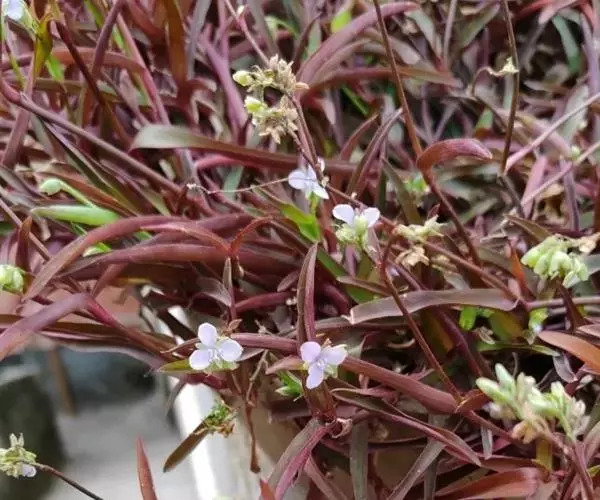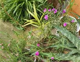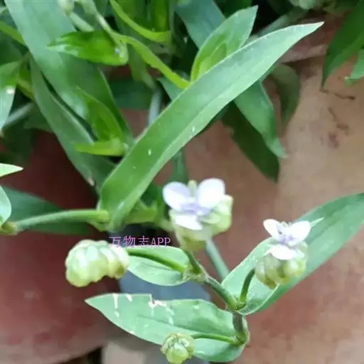 水竹叶又名:竹叶党。多年生草本,具长而横走根状茎。根状茎具叶鞘,节间长约6厘米,节上具细长须状根。茎肉质,下部匍匐,节上生根,上部上升,通常多分枝,长达40厘米,节间长8厘米,密生一列白色硬毛,这一列毛与下一个叶鞘的一列毛相连续。叶无柄,仅叶片下部有睫毛和叶鞘合缝处有一列毛,这一列毛与上一个节上的衔接而成一个系列,叶的他处无毛;叶片竹叶形,平展或稍折叠,长2-6厘米,宽5-8毫米,顶端渐尖而头钝。花序通常仅有单朵花,顶生并兼腋生,花序梗长1-4厘米,顶生者梗长,腋生者短,花序梗中部有一个条状的苞片,有时苞片腋中生一朵花;萼片绿色,狭长圆形,浅舟状,长4-6毫米,无毛,果期宿存;花瓣粉红色,紫红色或蓝紫色,倒卵圆形,稍长于萼片;花丝密生长须毛。蒴果卵圆状三棱形,长5-7毫米,直径3-4毫米,两端钝或短急尖,每室有种子3颗,有时仅1-2颗。种子短柱状,不扁,红灰色。花期9-10月(但在云南也有5月开花的),果期10-11月。
