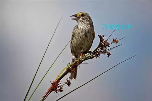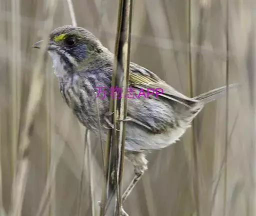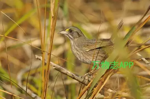 海滨沙鹀(学名:Ammodramus maritimus):小型鸣禽,体长13-15厘米,翼展18-20厘米。一般主食植物种子。喙为圆锥形,与雀科相比较为细弱,上下喙边缘不紧密切合而微向内弯,因而切合线中略有缝隙;体羽大多似麻雀,外侧尾羽有较多的白色。非繁殖期常集群活动,繁殖期在地面或灌丛内筑碗状巢,产卵3-4枚,一般由雌鸟孵化12-13天,雏期约等于孵化期。
