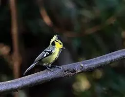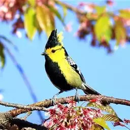 台湾黄山雀体长约13厘米。头顶至后颈黑色,有一长的黑色羽冠,羽冠末端和后颈中央白色。背苍绿色,…