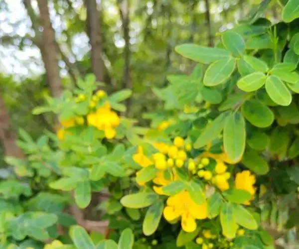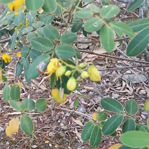 双荚决明(Senna bicapsularis(L.) Roxb.),又名双荚槐、金叶黄槐、金边黄槐,豆科(Leguminosae)直立灌木。偶数羽状复叶有小叶3-5对,基部一对小叶间具黑褐色腺体1枚。总状花序顶生,花鲜黄色。荚果圆柱状,内有两排黑褐色种子。花期4-11月,果期9-翌年3月。原产美洲热带地区,现广布于全世界热带地区。广东、广西有栽培。