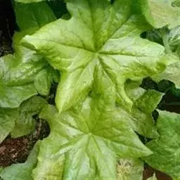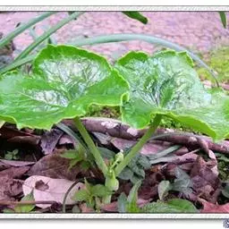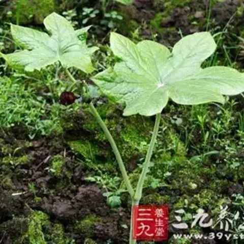 多年生草本,植株高15-30厘米。根状茎细长,通常圆柱形,横走,多须根;茎直立,无毛,有时带紫红色。茎生叶通常2枚,薄纸质,互生,不等大,形状多样,偏心盾状着生,叶片不分裂或浅裂,长5-11厘米,宽7-15厘米,基部常呈圆形,两面无毛,上面有时带紫红色,边缘疏生乳突状细齿;叶柄不等长,约3-11厘米,无毛。