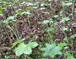 小八角莲为鬼臼属多年生草本。地下根状茎粗短横生。地上茎单一,高10。20厘米,较细,光滑无毛。叶常2枚,互生,较小,形状多样,常为不明显的4—8浅裂;叶柄生于叶片的中部。伞形花序有花2—5朵,生于距叶片不远的叶柄近顶处。6—7月开淡赭红色花,8—9月结球形小果。分布于尼叉河、板桥等地。生长于海拔1200-1800米的山坡或沟谷。
